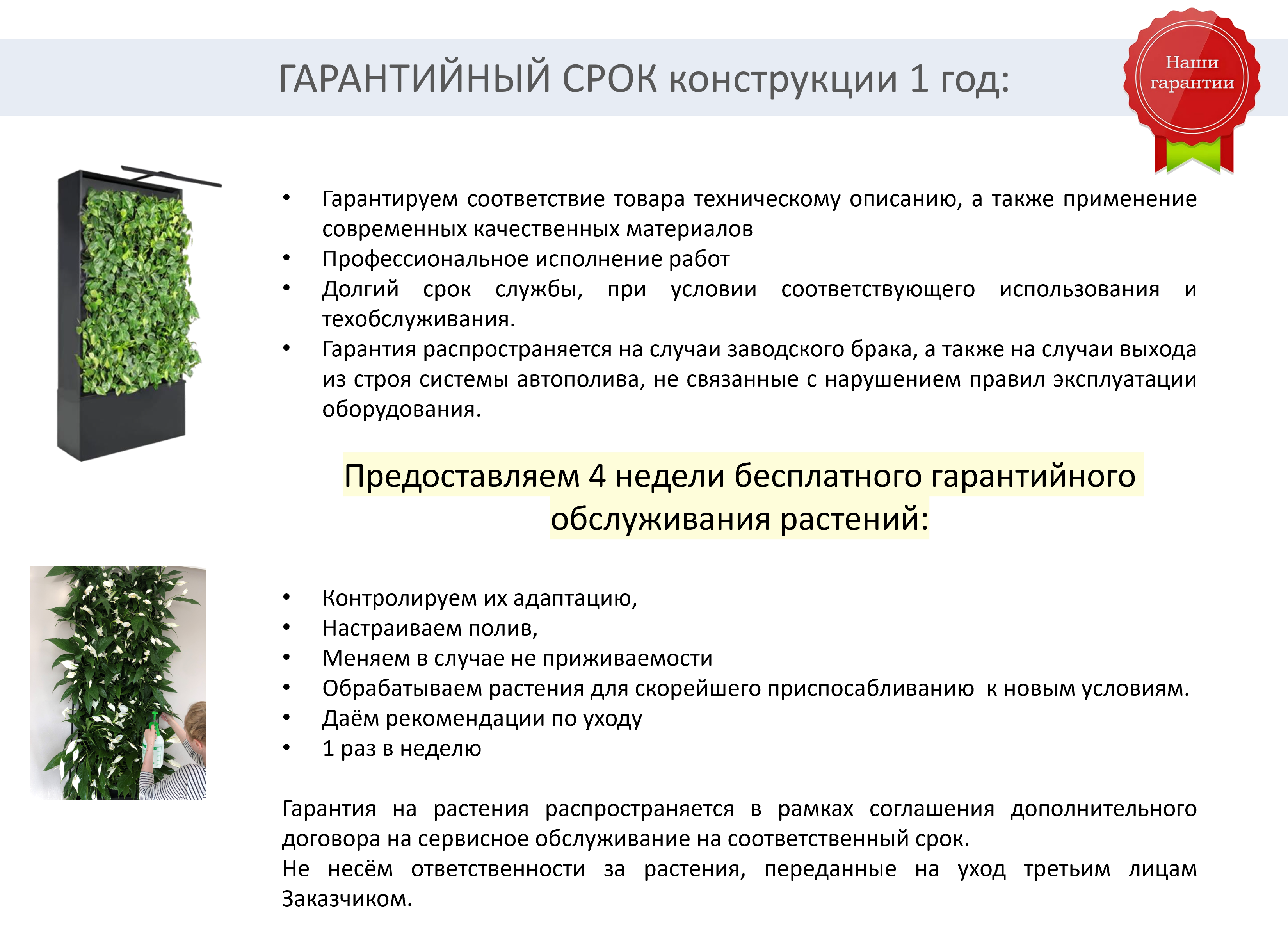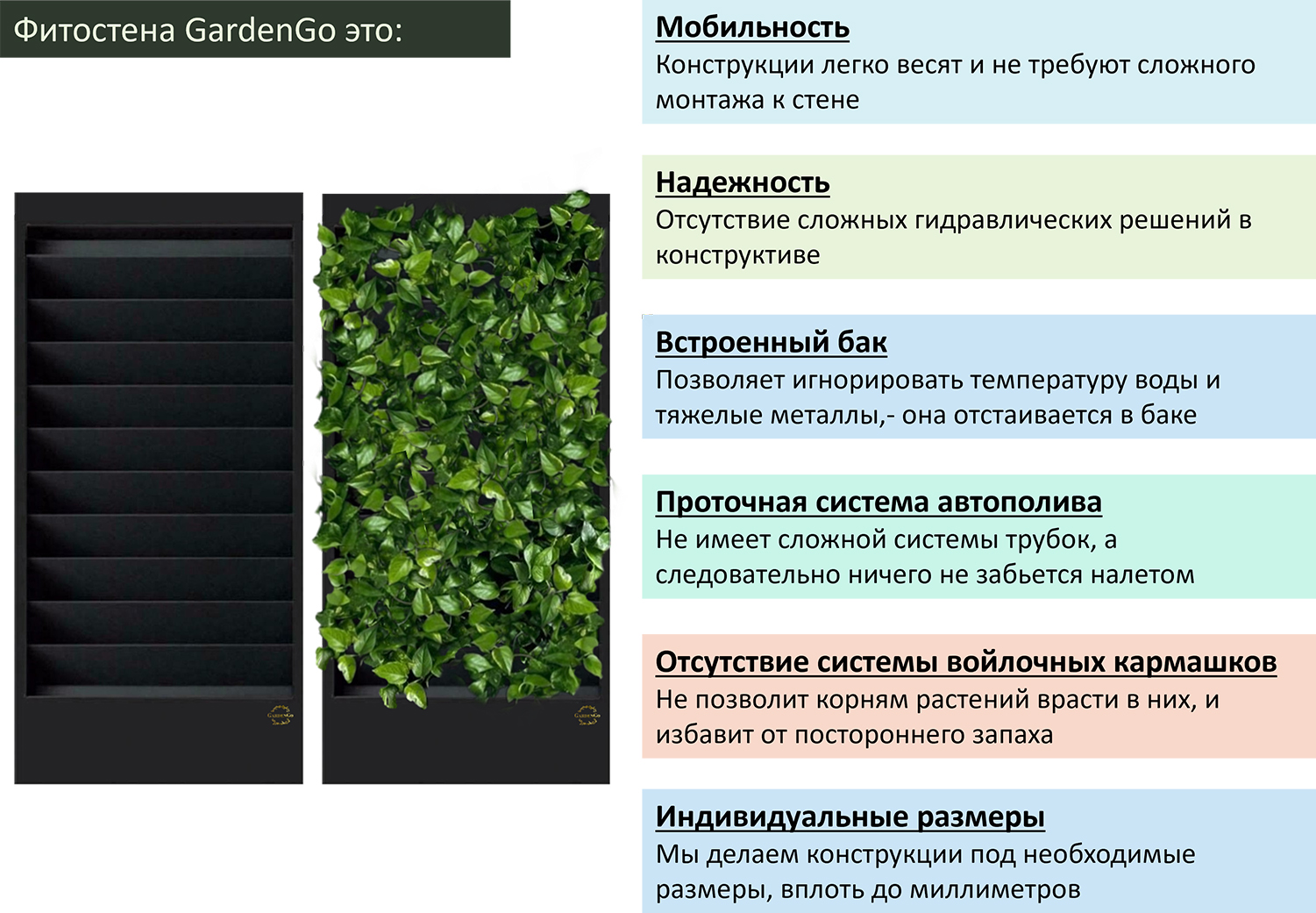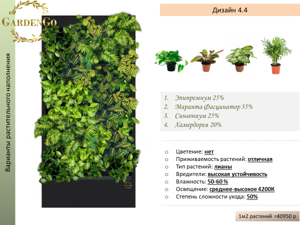 Применение: фитостена, двусторонняя перегородка, фитокартина