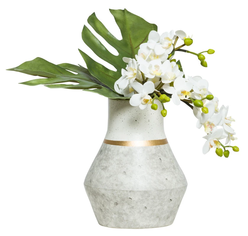 Искусственные растения в керамической вазе "Композиция с орхидеей и монстерой"