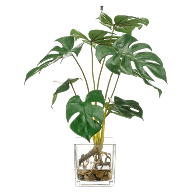 Монстера искусственная в стеклянной прозрачной вазе, В 32