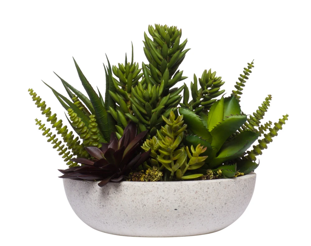 Главная Настольные Микс суккулентов Эхеверия в белом кашпо, В 25 Д 22