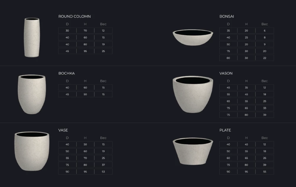 • Кашпо из искусственного камня уникальной технологии ручного производства, изготавливаются на заказ, поэтому можем собрать изделие по индивидуальным габаритам, оттенкам и другим характеристикам.