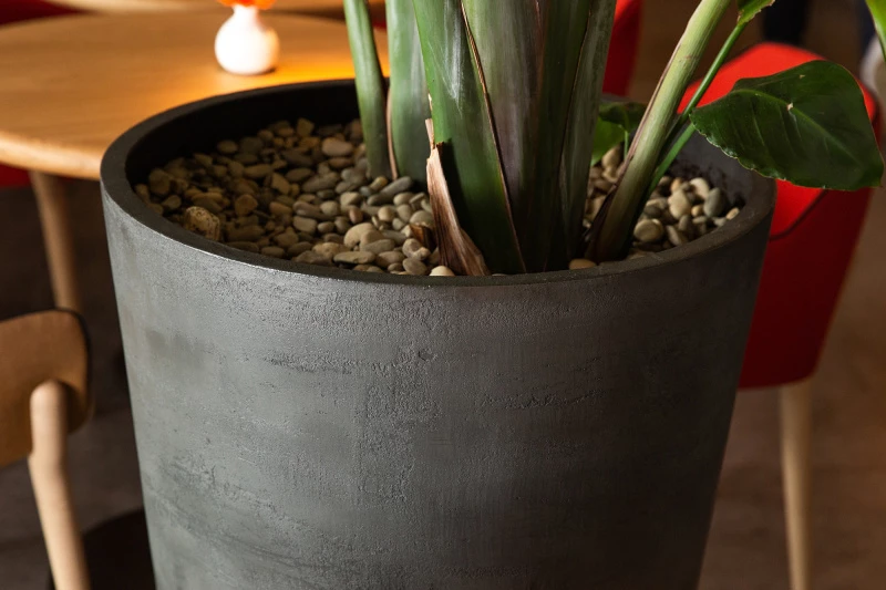 Технология производства полимерного бетона позволяет достигать высокой степени детализации в текстурах, что способствует созданию эффектных и запоминающихся решений. Такие кашпо могут быть как акцентными элементами в интерьере, так и гармонично сочетаться с другими предметами обстановки. Использование фактур добавляет визуальную глубину и интерес, создавая многослойность восприятия пространства.