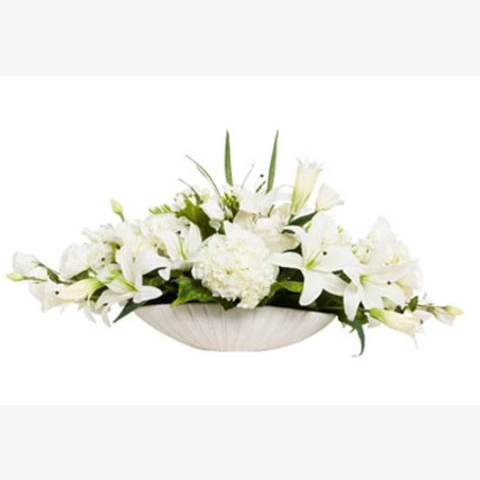 "Микс Белых цветов" , в керамической вазе лодочке Д 50, В 30
