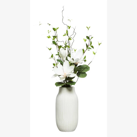 Декор настольный "Магнолия" , искусственные цветы в керамической вазе Цветы: 3 ветки магнолии, 3 ветки дерева Ваза: белая В25 или по наличию аналог Размеры общие: В 50