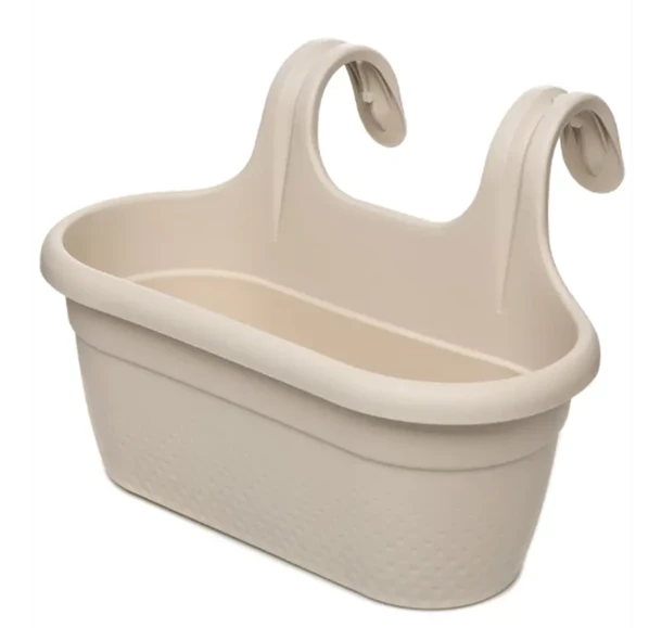 Кашпо пластиковое двойное Цвет:Белый\Мокко\Серый Рисунок: линии Размеры: 20*20