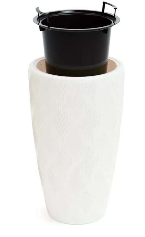 Кашпо пластиковое с внутренней вставкой Д29 В26 Цвет:Белый\Чёрный\Песочный Размеры: Д 30 см, В 57 см 15л\ 1,8 кг