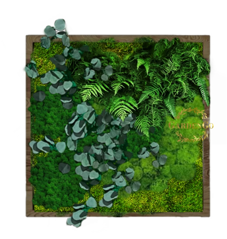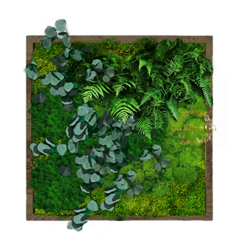 Главная Стабилизированные фитостены, панно, ночники Квадратные панно Панно из микса мхов с папоротником и эвкалиптом в деревянной раме №13