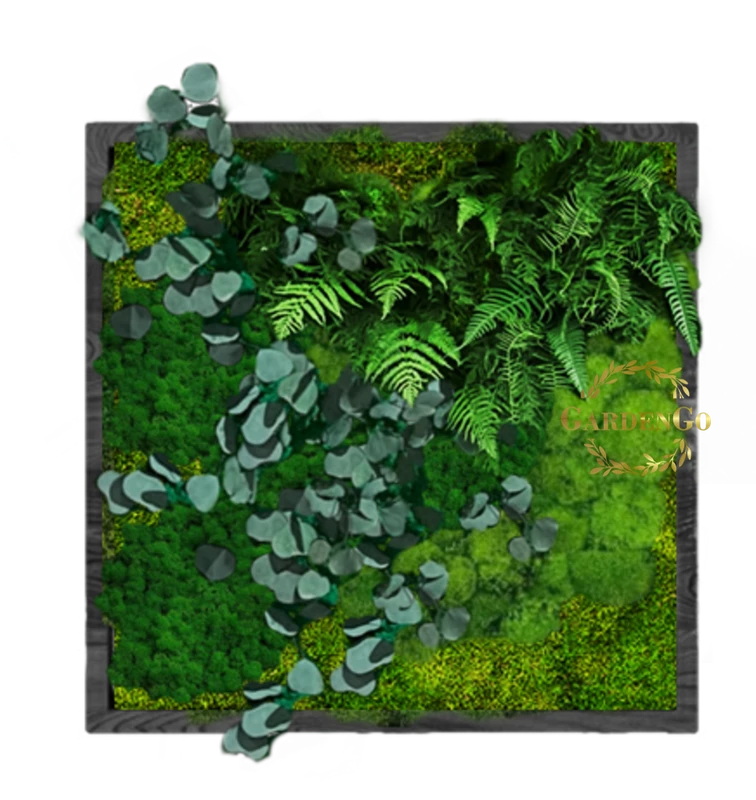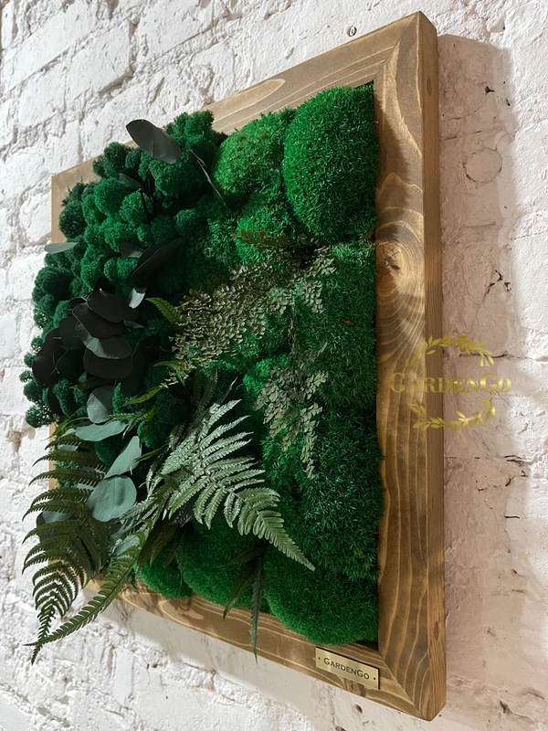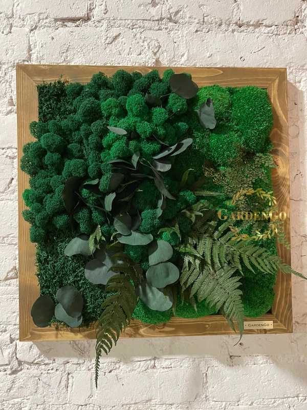 Панно из микса мхов с папоротником и эвкалиптом в деревянной раме №13