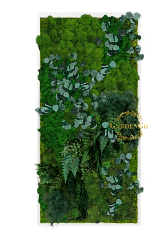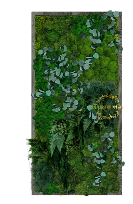 Панно из микса мхов с папоротником и эвкалиптом в деревянной раме №14