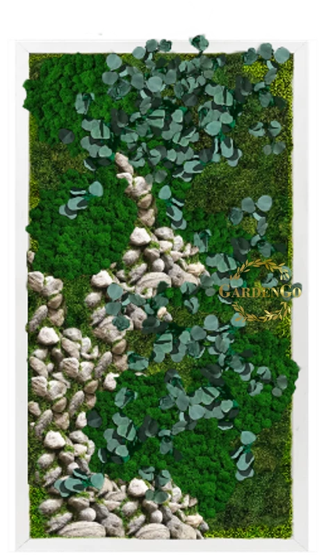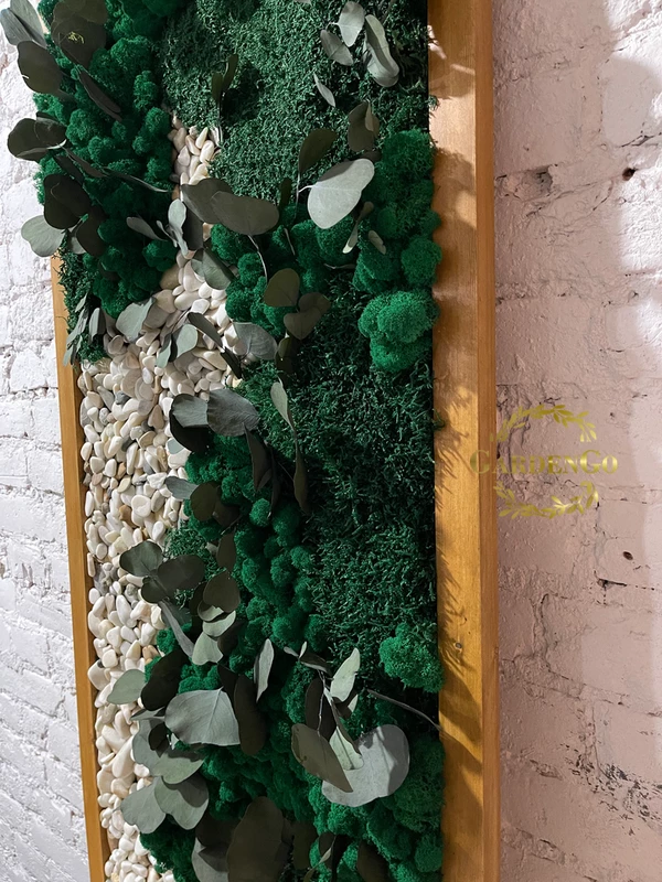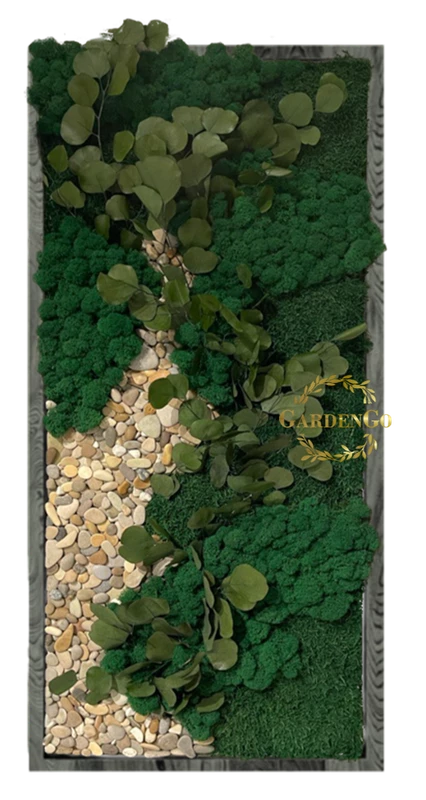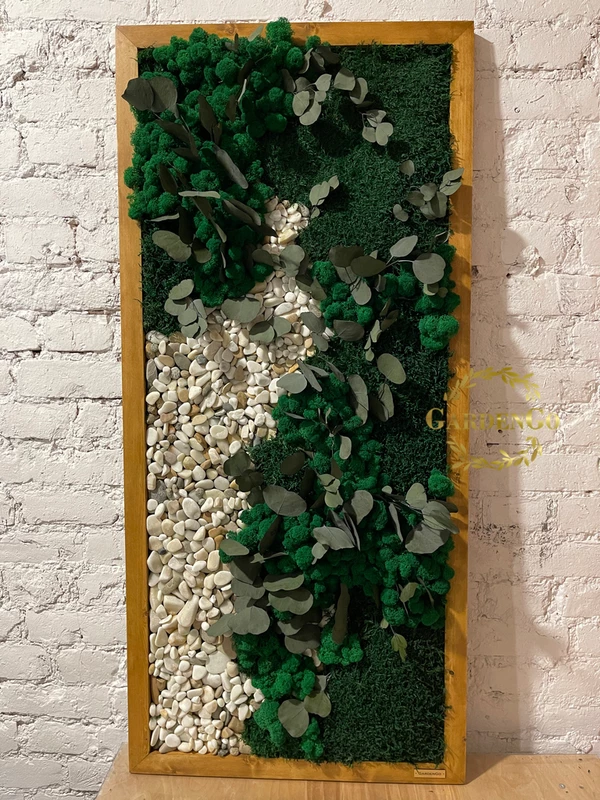 Панно из мха с эвкалиптом и галькой в деревянной раме №18
