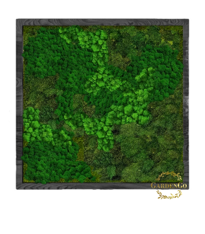 Панно из мха "Микс с ягелем и пластами" в деревянной раме №28
