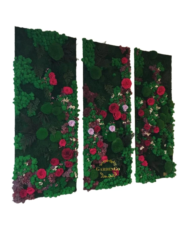 Панно "Триптих мхов и роз" в деревянной раме №39