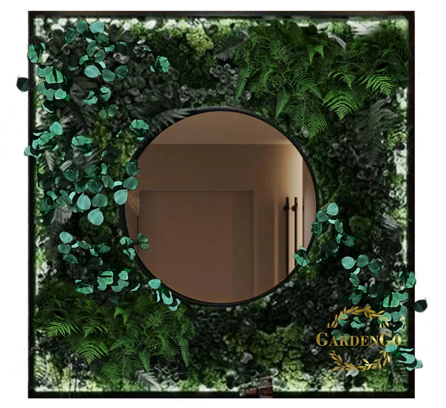 Панно "Микс мхов и зелени с зеркалом" в раме №44