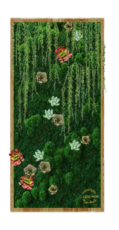 Панно "Микс мхов с амарантом и суккулентами" в раме №46