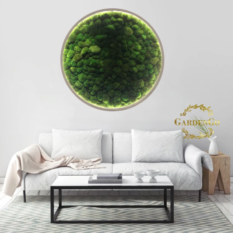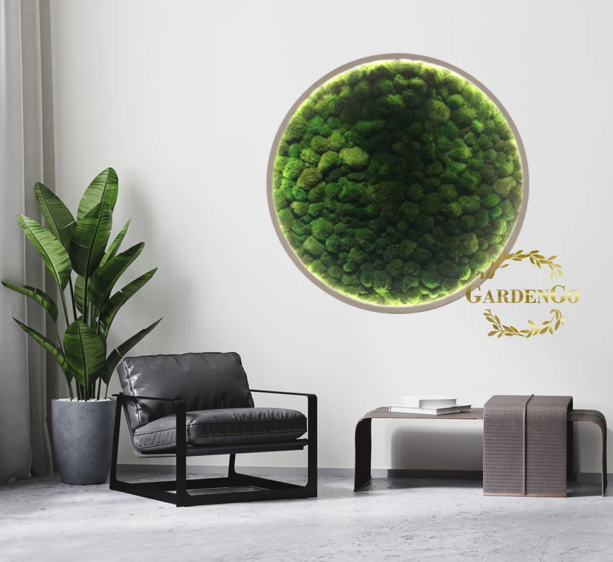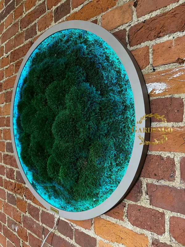Панно из мха "Ягель" в круглой раме с подсветкой №56