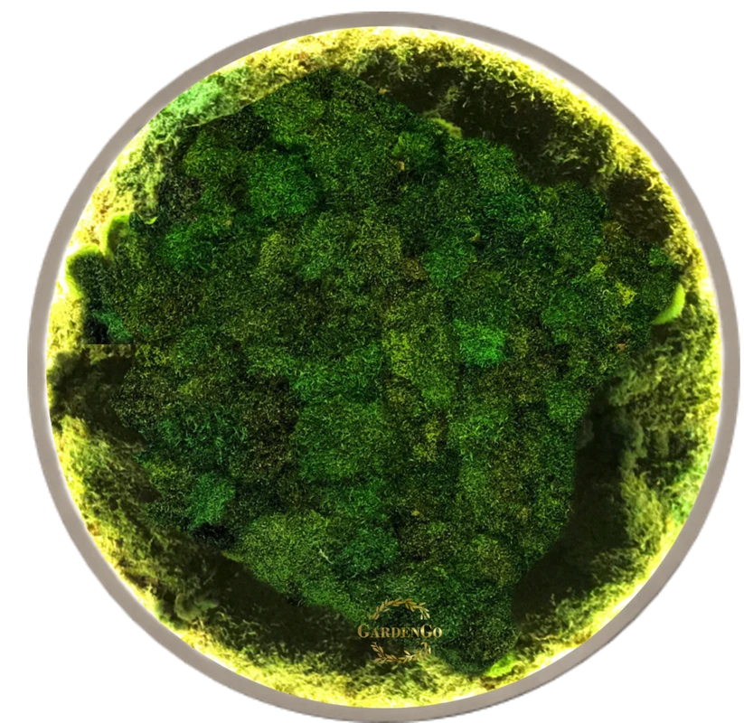 Панно из мха "Пласты" в круглой раме с подсветкой №58