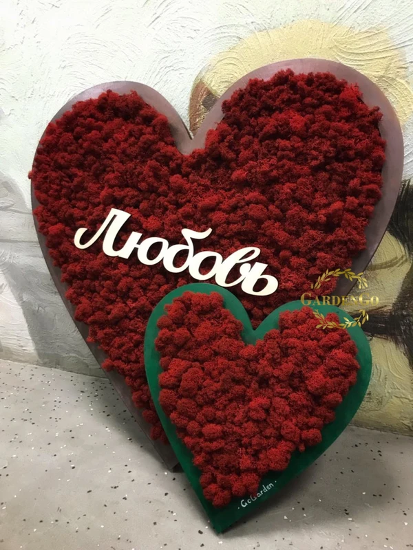 Главная Стабилизированные фитостены, панно, ночники Фигурные панно Панно "Сердце" из стабилизированного мха в раме №72