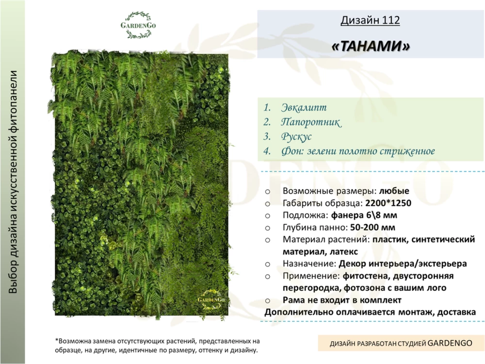 Фитостена искусственная Дизайн №112 "ТАНАМИ"