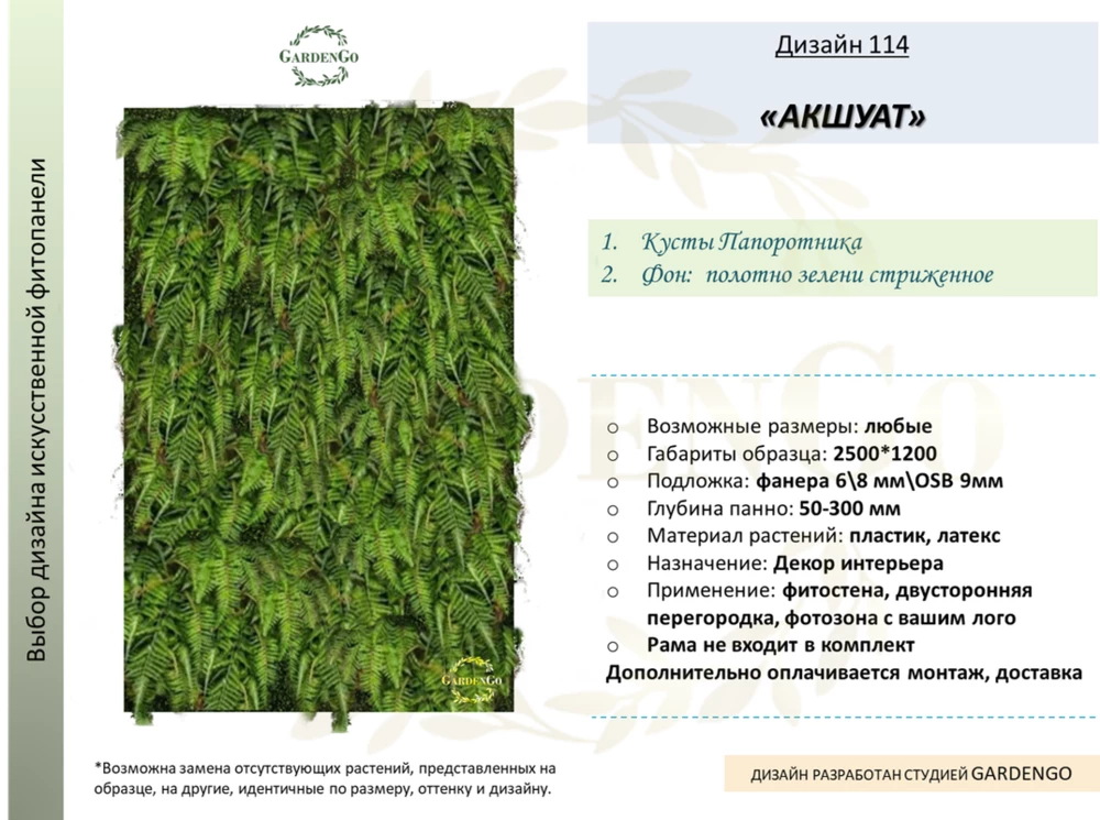 Фитостена искусственная с папоротником. Дизайн №114 "АКШУАТ"