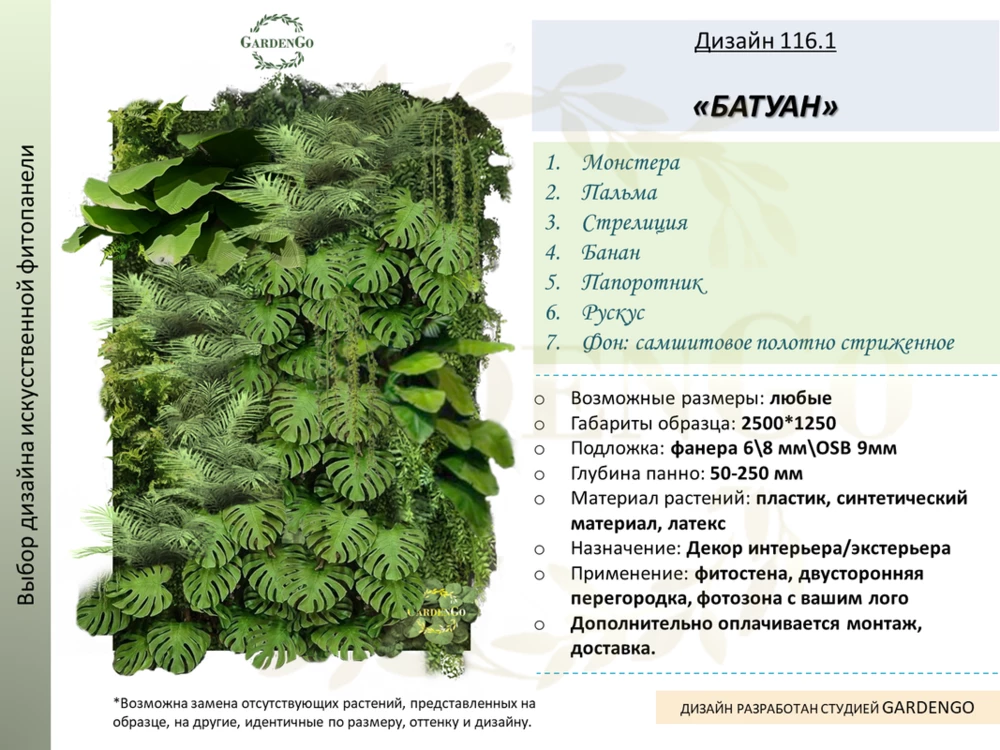 Фитостена искусственная тропическая. Дизайн №116.1 "БАТУАН"