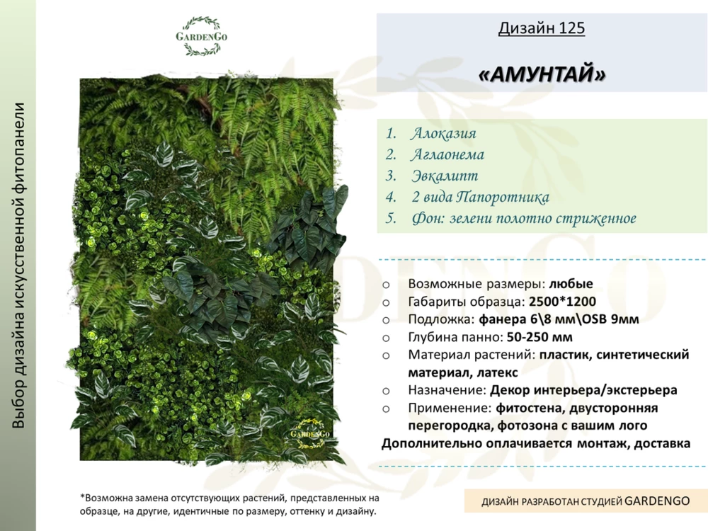 GardenGo предлагает широкий выбор фитостен, включая различные виды растений, цветовые решения и текстуры. Вы можете выбрать как яркие, насыщенные варианты, так и более спокойные, нейтральные оттенки, что позволяет легко интегрировать их в любой интерьер.