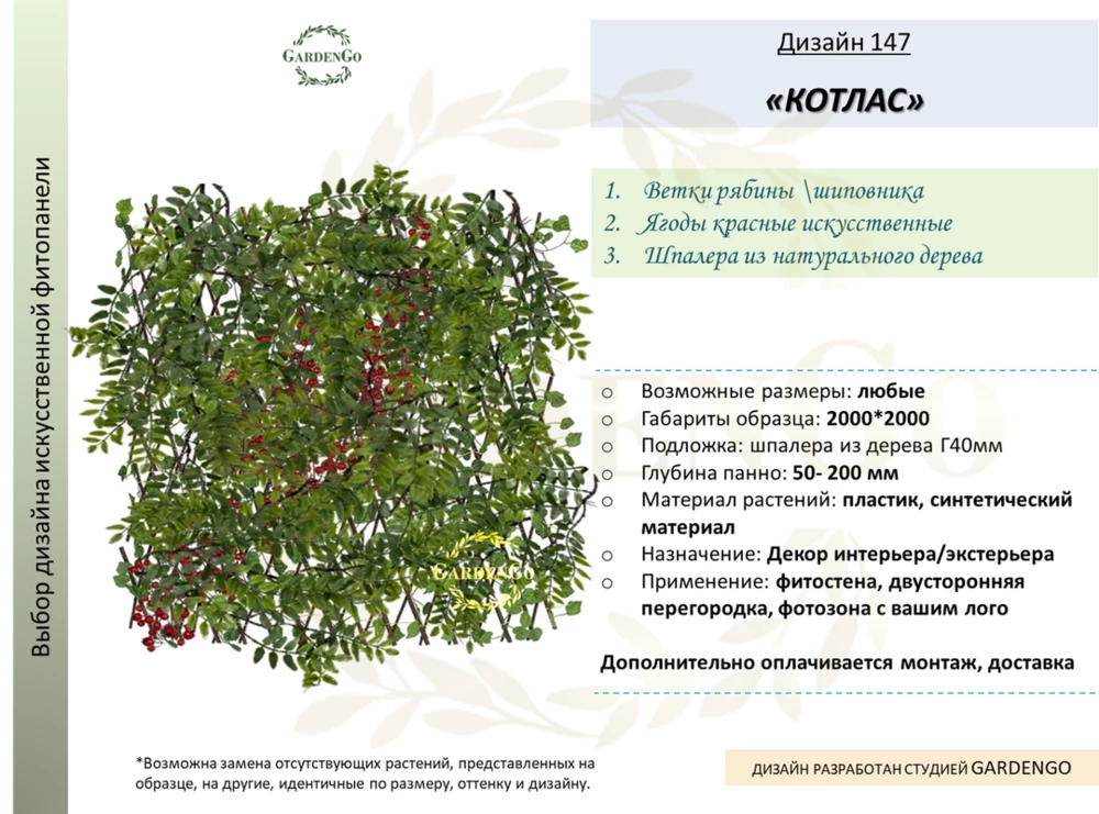 Фитостена искусственная Дизайн №147 "КОТЛАС", 1м2