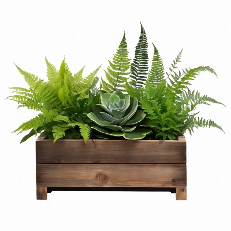 Кашпо со скамьёй и композицией из искусственных растений Растения искусственные: Фикус 160 см , пальма 2 вида 50 см , аспарагус 35 см , рипсалис 30 см (15 шт. на 1 м2) Кашпо- скамья: дерево лиственница Цвет скамьи- кашпо: Орех (на выбор) Размеры: Левая...