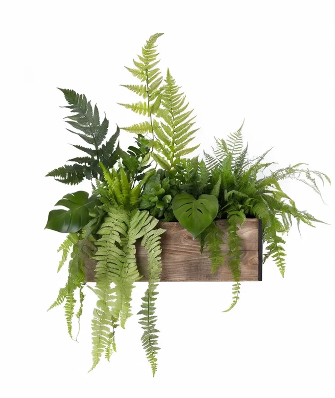Кашпо с искусственными растениями Растения искусственные: -Баксия -Папоротник -Филодендрон -Крестовник роули -Эвкалипт Кашпо: Фанера сорт А Покрытие: эмаль\масло-воск (на выбор) Цвет кашпо: на выбор Размеры кашпо: В 15 см Д 50 см Ш 15 с