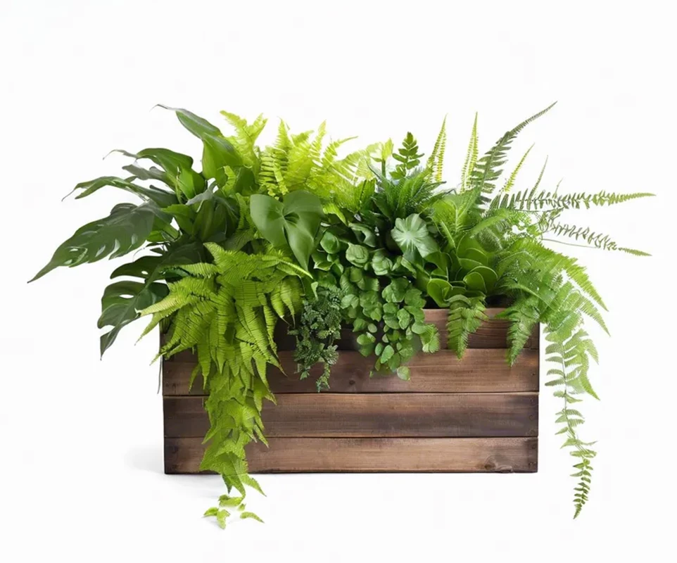 Кашпо с искусственными растениями Растения искусственные: -Монстера -Папоротник -Розы -Суккуленты -Аспарагус Кашпо: Фанера сорт А, на ножках 20 см Покрытие: эмаль\масло-воск (на выбор) Цвет кашпо: на выбор Размеры: В 40 см Д 50 см Ш 20 см