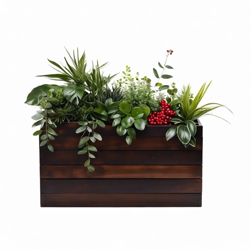 Растения искусственные в кашпо Кашпо: фанера кат. А, с покрытием на выбор (эмаль\масло-воск) Цвет кашпо: Орех (на выбор) Искусственные растения: Филодендрон, Гипсофила, Пальма, Осока, Суккуленты Комплект подвесов (потолочных\настенных): по запро
