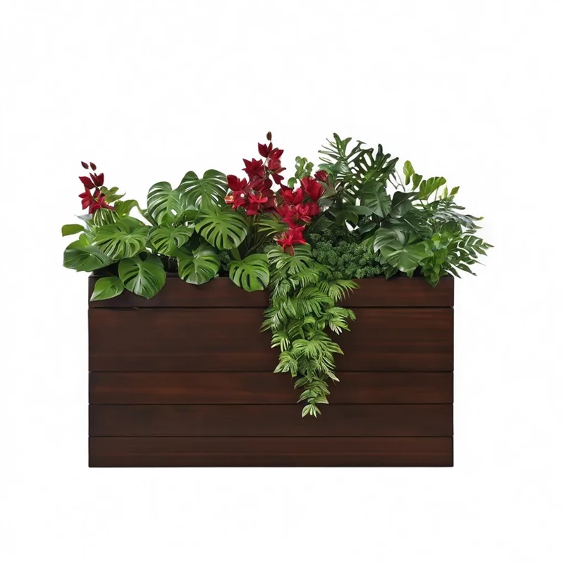 Растения искусственные в кашпо с Магнолией Кашпо: дерево, с покрытием на выбор (эмаль\масло-воск) Цвет кашпо: Эбен (на выбор) Растения искусственные: Монстера, Пальма, рускус, Орхидея Размеры: Кашпо: В 60 см Д 100 см Ш 25 см Высота общая 85 с