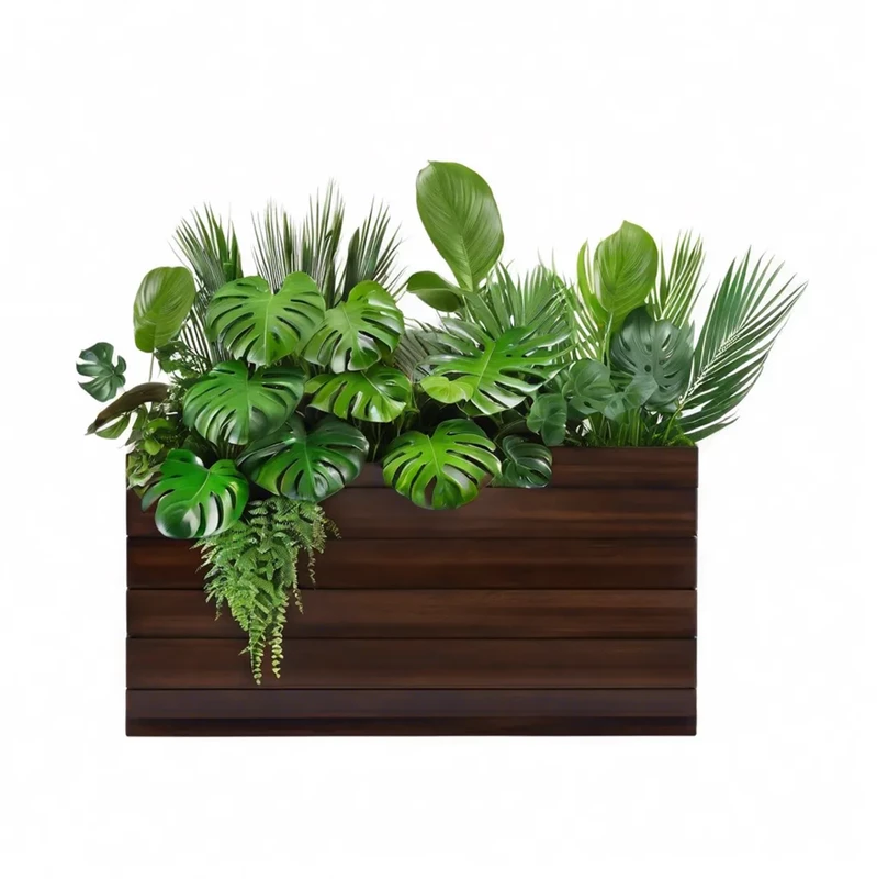 Растения искусственные в кашпо Кашпо: Фанера сорт А Покрытие: эмаль\масло-воск (на выбор) Цвет кашпо: на выбор Растения искусственные: Монстера, Пальма, Папоротник, Алоказия Размеры: Кашпо: В 30 см Д 130 см Ш 30 см Высота общая: 70 см ДОПОЛНИТ