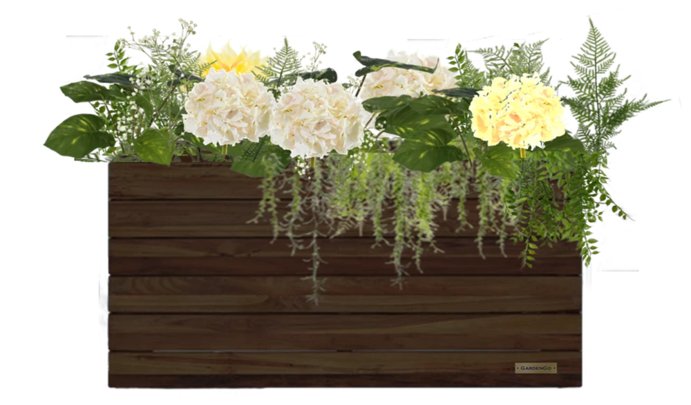 Композиция из искусственных растений в кашпо с бело-желтой гортензией №164, В85*Д100*Ш25