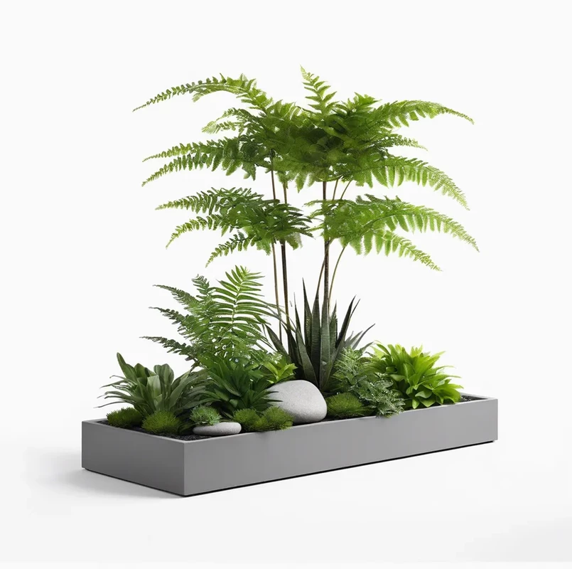 Кашпо с искусственными растениями бонсай Папоротник №185, В125*Д120*Ш45