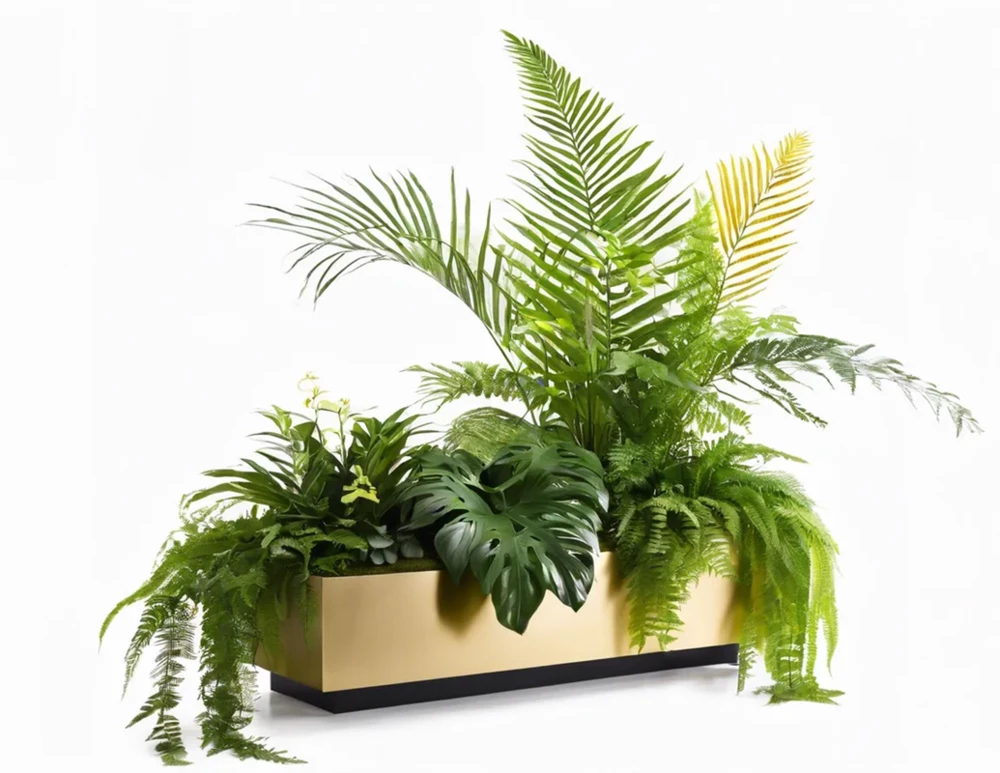 Модульный комплект из 3х кашпо из фанеры с искусственными растениями №226, В150*Д60*Ш60