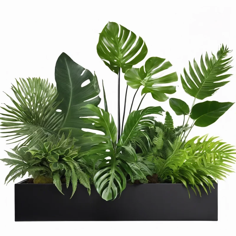 Растения искусственные в кашпо Кашпо: Фанера сорт А Покрытие: эмаль\масло-воск (на выбор) Цвет кашпо: Чёрный (на выбор) Растения искусственные: Алоказия, Хедера, Камнеломка, Эпипремнум, Осока Размеры: кашпо: В 15 см Д 100 см Ш 15 см Общая высо