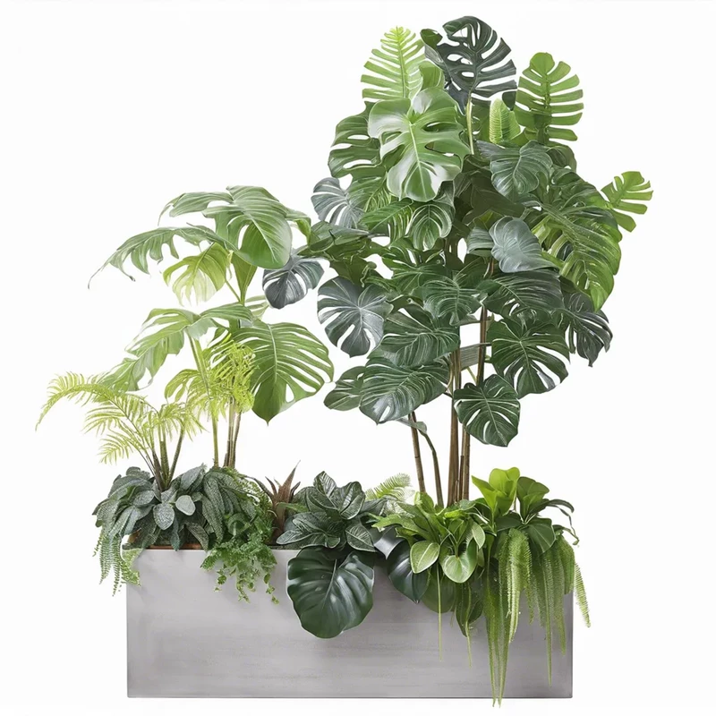 Кашпо с миксом искусственных растений в тропическом стиле Растения искусственные: Пальмы Филодендрон, Монстера, Калатея, Адиантум, Спатифиллум Кашпо: Фанера премиум (на выбор) Покрытие: эмаль\масло-воск (на выбор) Цвет кашпо: на выбор Заполнение: с