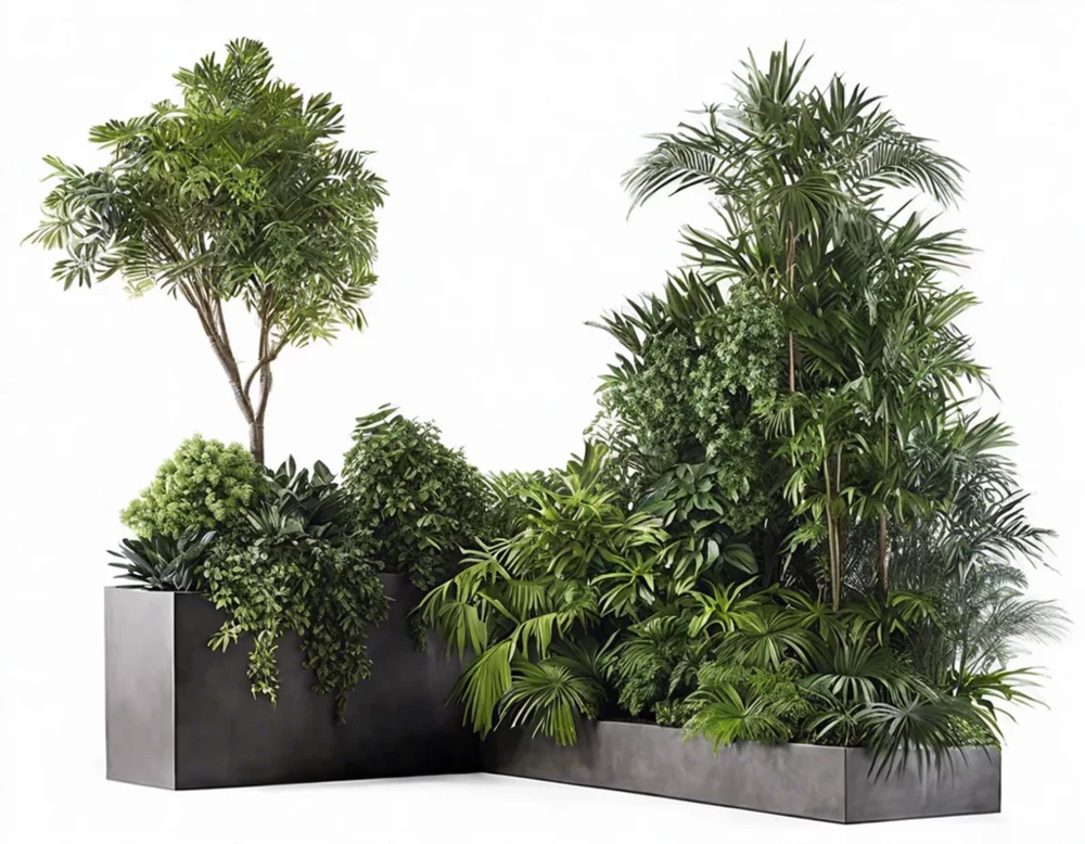 Композиция с искусственными растениями на рейке "Вуаль из зелени Семирамида", Д100, В250 см