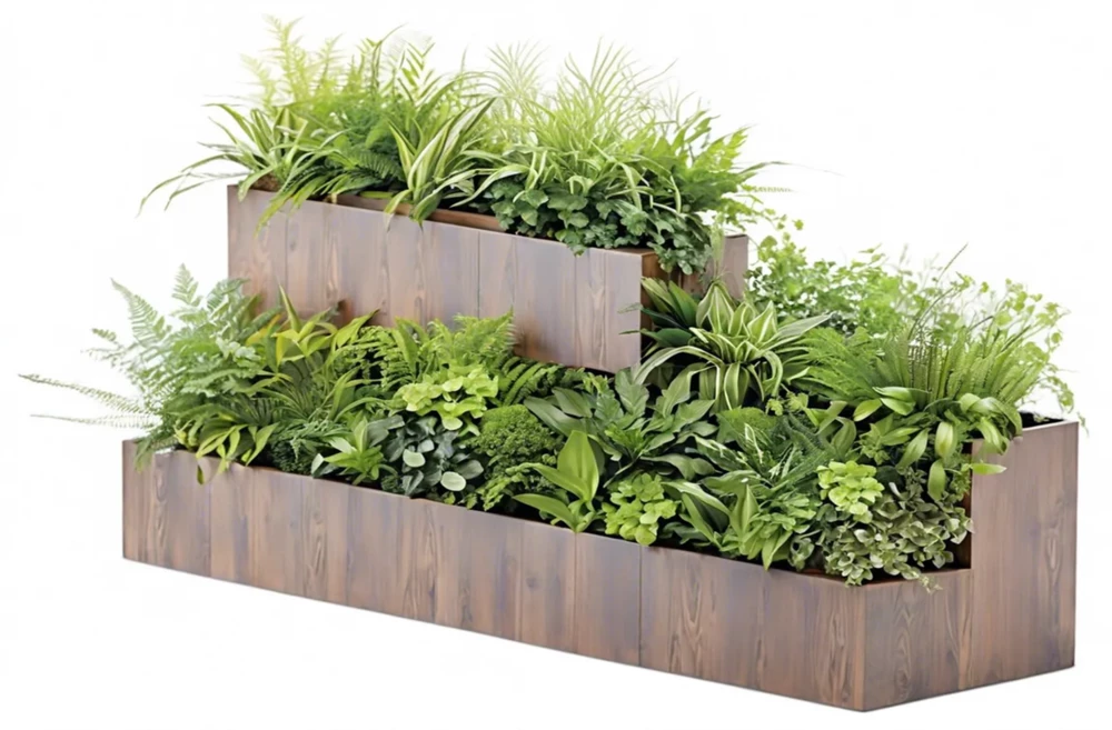 Деревянное кашпо с встроенной подсветкой и искусственными растениями №282, В100*Д100*Ш14