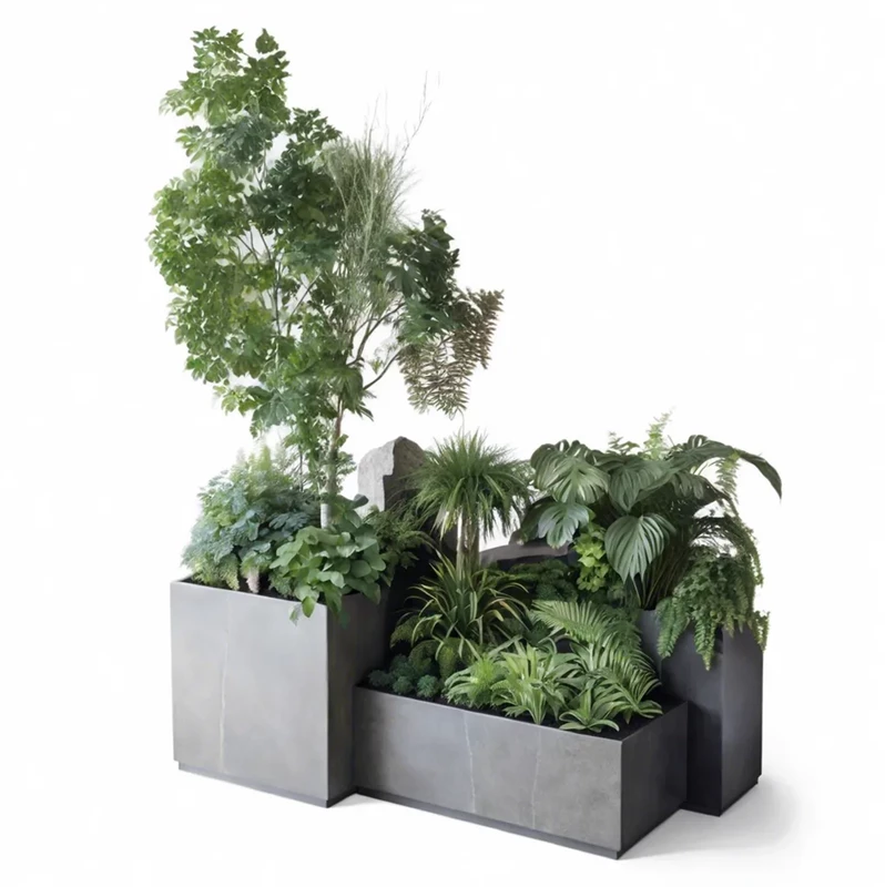 Кашпо с композицией из искусственных растений, комплект из 3 шт. №239, В180*Д100*Ш30