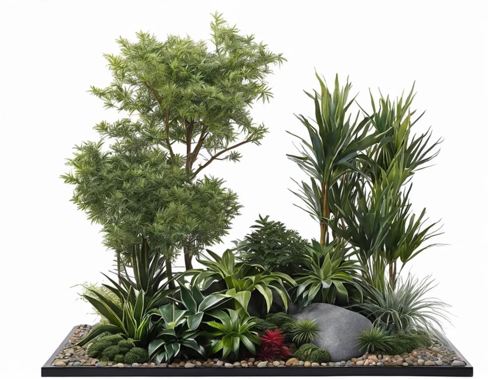 Фитостена искусственная с бананом и суккулентами. Дизайн №124 "КОТАБАТО"