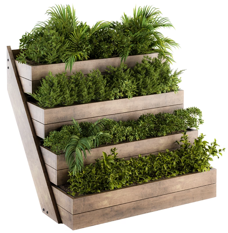Композиция из искусственных растений Кашпо: деревянное с покрытием на выбор (эмаль\масло-воск) 3 шт. Цвет кашпо: орех (на выбор) Растения искусственные: шеффлера 100 см , кипарис 50 см , осока 45 см , аглаонема 50 см , лисохвост 30 см , монстера 4