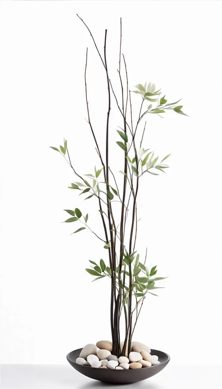 Ветки дерева мицумата с листьями бонсай Кашпо: бонсай серое Д56 (или аналог по наличию) Цвет: Натуральный (на выбор) Декор: Камни белые Размеры общие: В 200 Эффектная композиция "Ветки дерева мицумата с листьями в кашпо бонсай" — стильный элемент д...