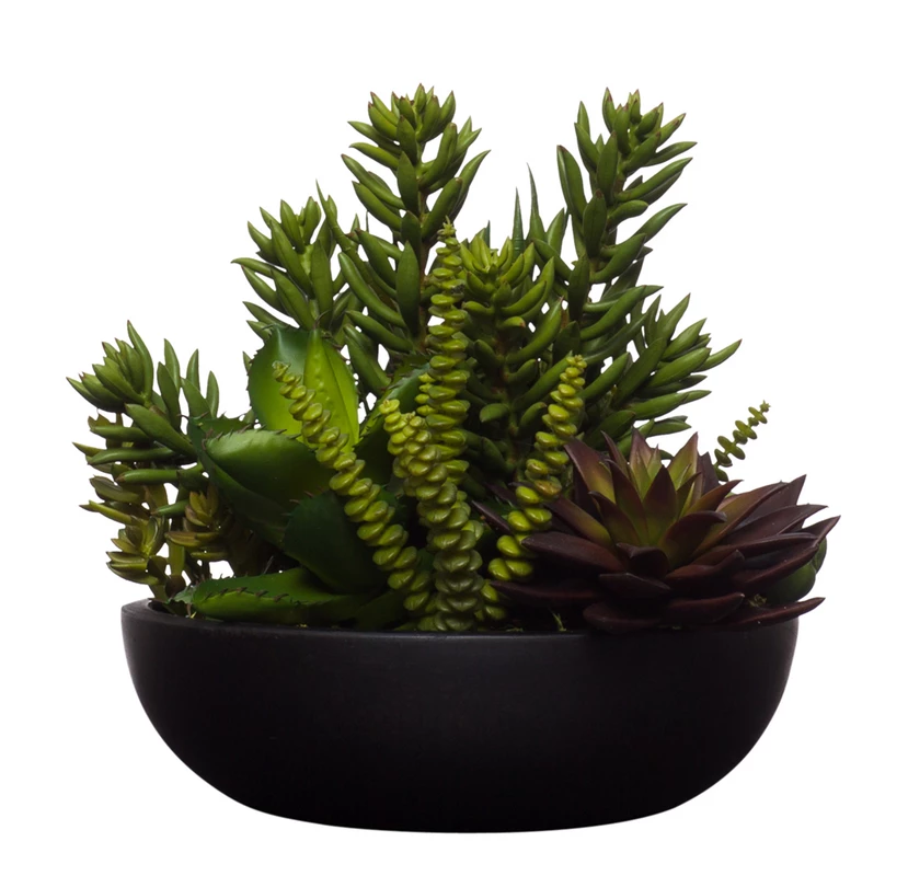 "Микс суккулентов Эхеверия" в чёрном кашпо, В 20 Д 15