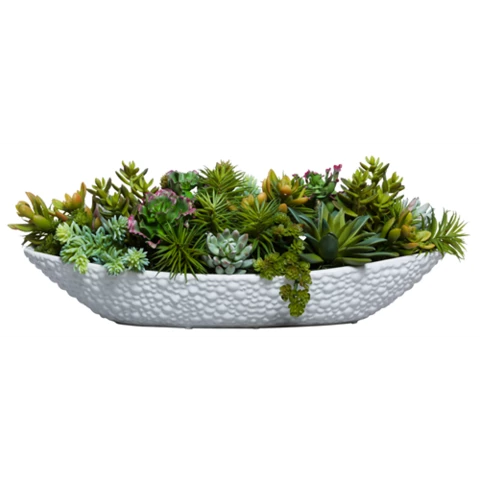 "Микс суккулентов в кашпо лодочке" В 23 Д 50 Ш 14