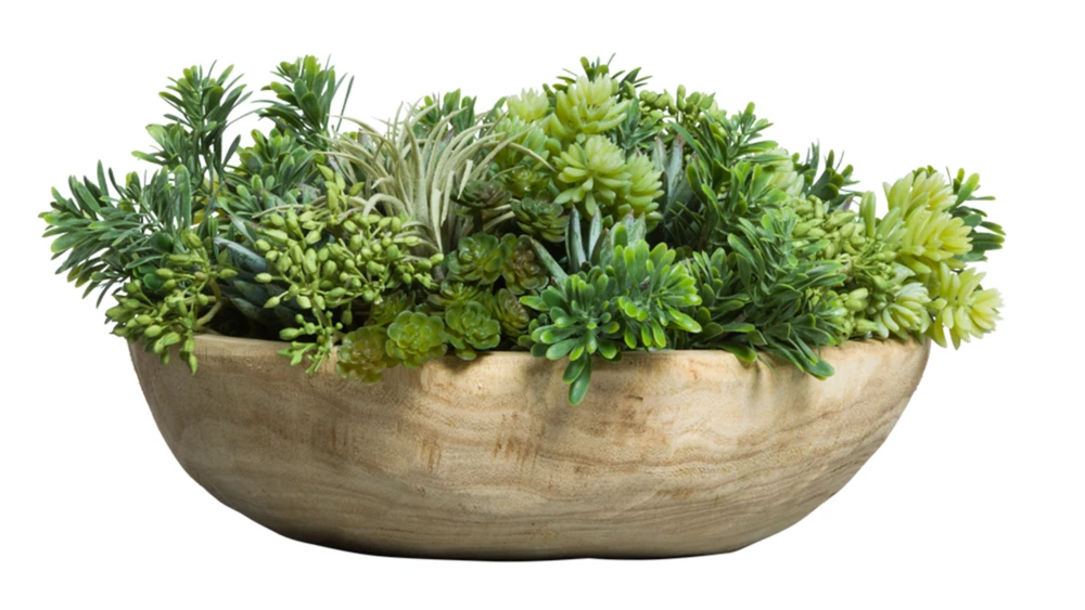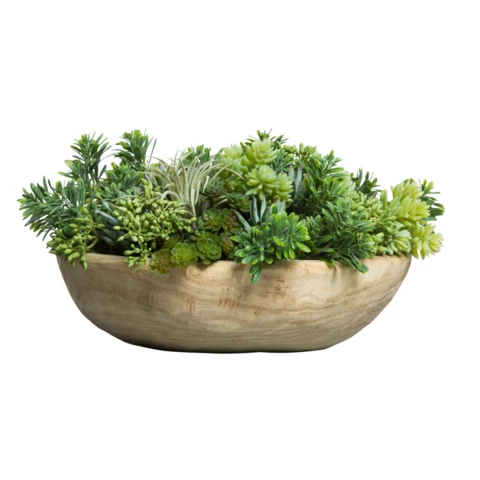 "Микс суккулентов в деревянном блюдце" В 10 Д 25