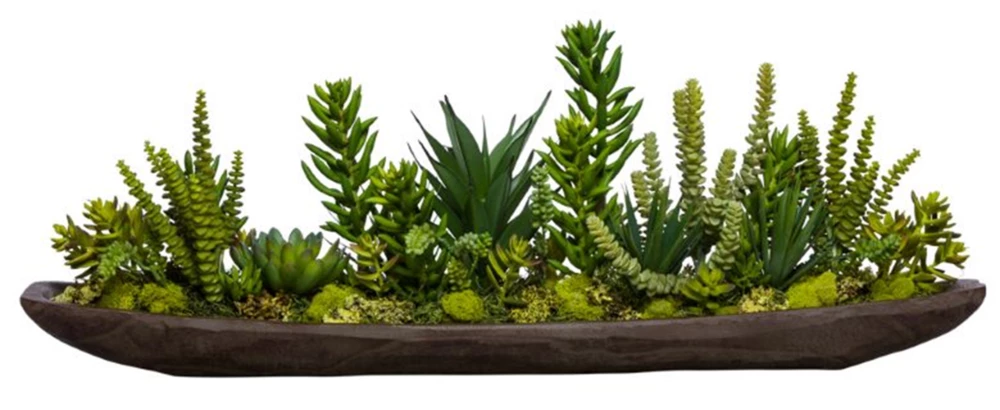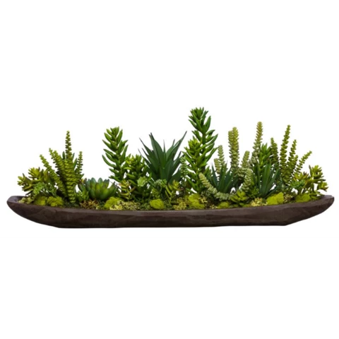 "Микс суккулентов в деревянной лодочке" В 15 Д 50 Ш 13