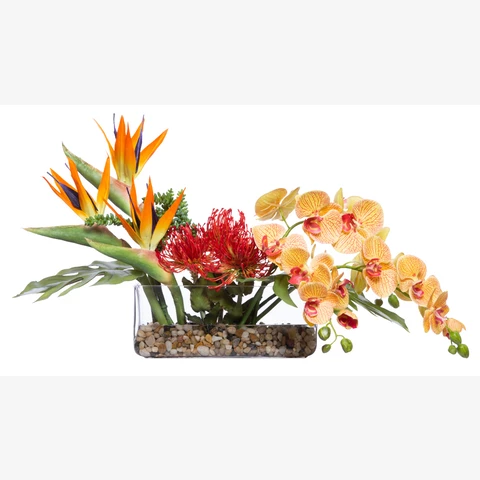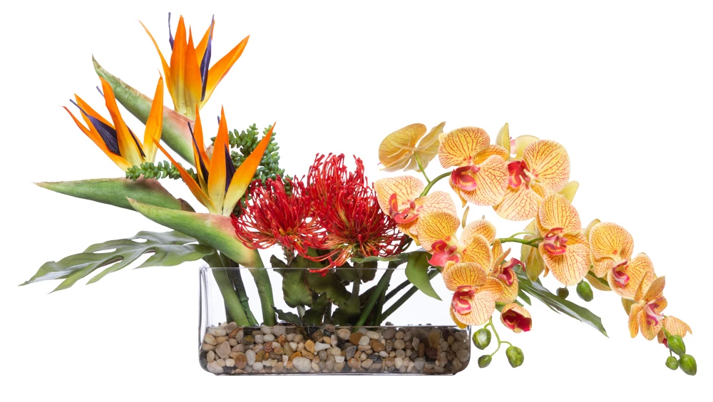 Искусственное растение в кашпо "Стрелиция" Растение: По рендеру или аналог Количество: 2 куста (1шт 160, 1 шт. 120.) Кашпо: Белое Д30, или по наличию аналог Размеры общие: В 170