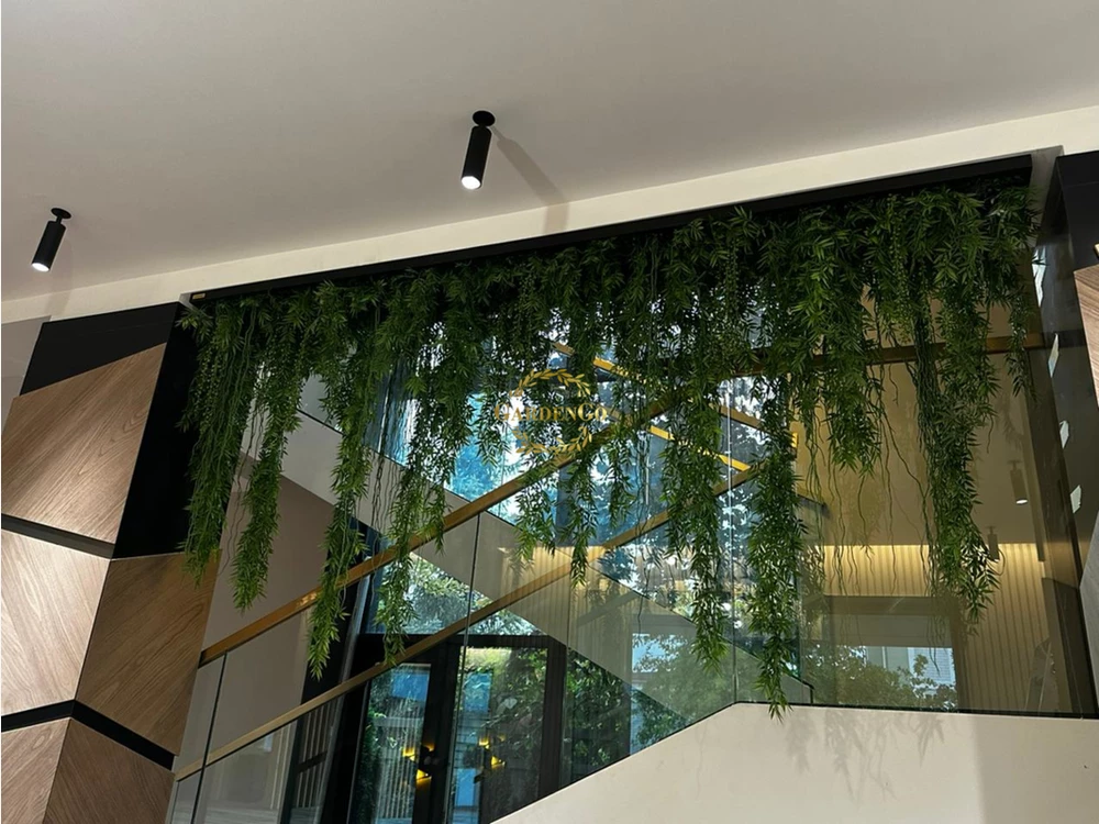 Композиция с искусственными растениями на рейке "Вуаль из зелени удлинённая", Д100, В120 см