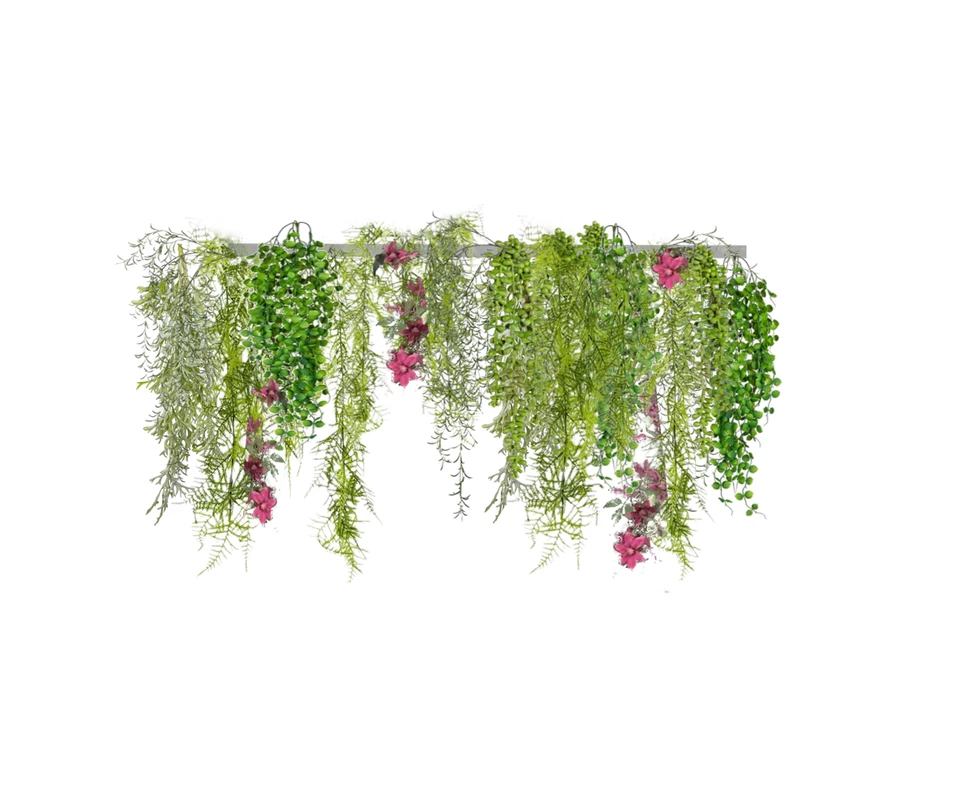 Главная Комплекты декора и композиции с искусственными растениями Подвесные Композиция с искусственными растениями на рейке "Вуаль из зелени с цветами", Д100, В80 см